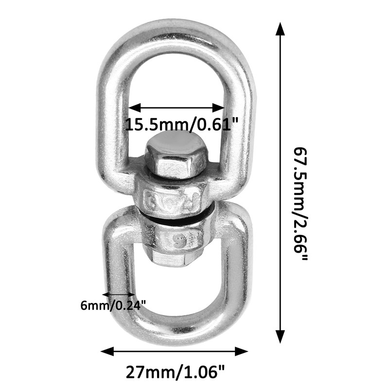 - ❤High-Quality and Durable Material: Our double ended swivel eye hook is made of 304 stainless steel, ensuring maximum corrosion resistance and durability. The round and glossy surface provides an anti-rust and anti-corrosion finish. This solid construction with a strong load-bearing capacity makes our swivel eye hook sturdy and long-lasting.