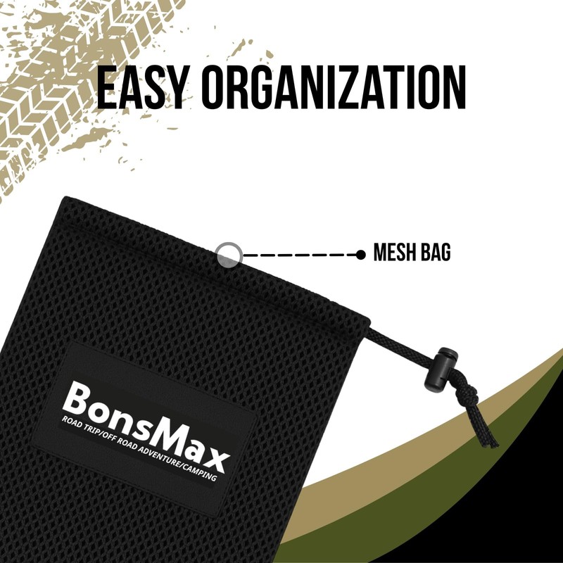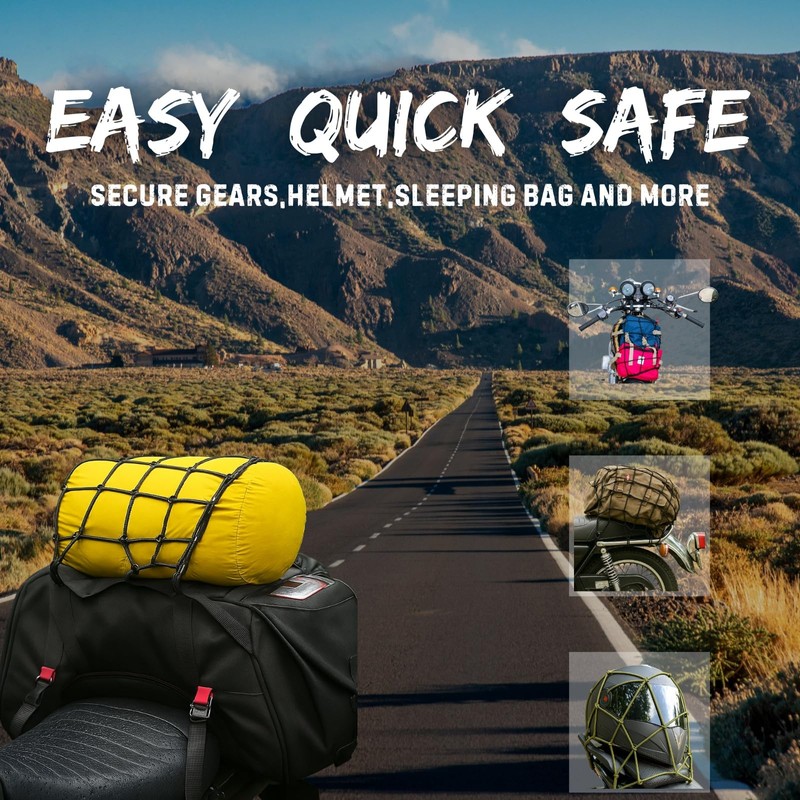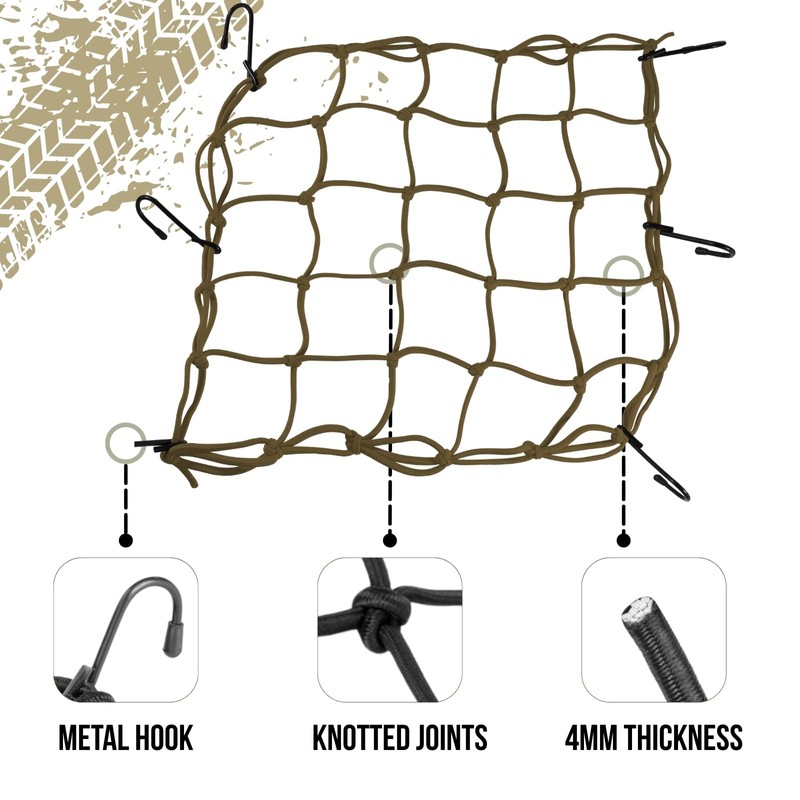 • QUALITY LATEX BUNGEE NET-Made with upgraded 5mm latex cord, providing a reliable and efficient storage solution for your gears. helps you to quickly tie up both small and large cargo items and holds them firmly and securely in place