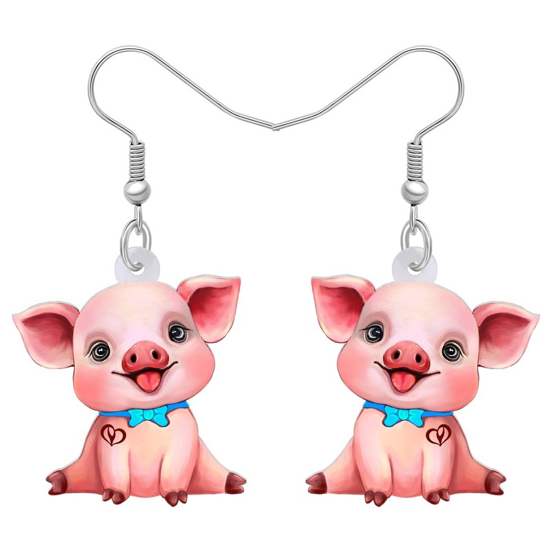 Bonsny Acrylic Drop Dangle Farm Cute Pig Earrings Jewelry For Women Gift Charms (Salmon)