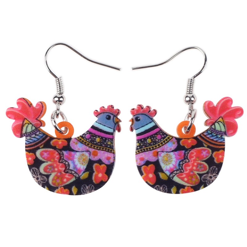 BONSNY Chicken Hen Cockerel jewellery Charm Dangle Drop Animal Dangle Earrings
