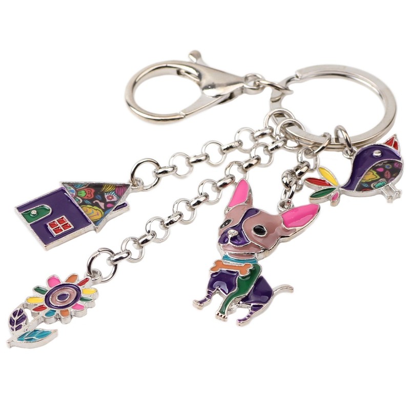 BONSNY Enamel Alloy Chain Chihuahua Dog Key Chains For Women Car Purse Handbag Charms Gifts (Purple)