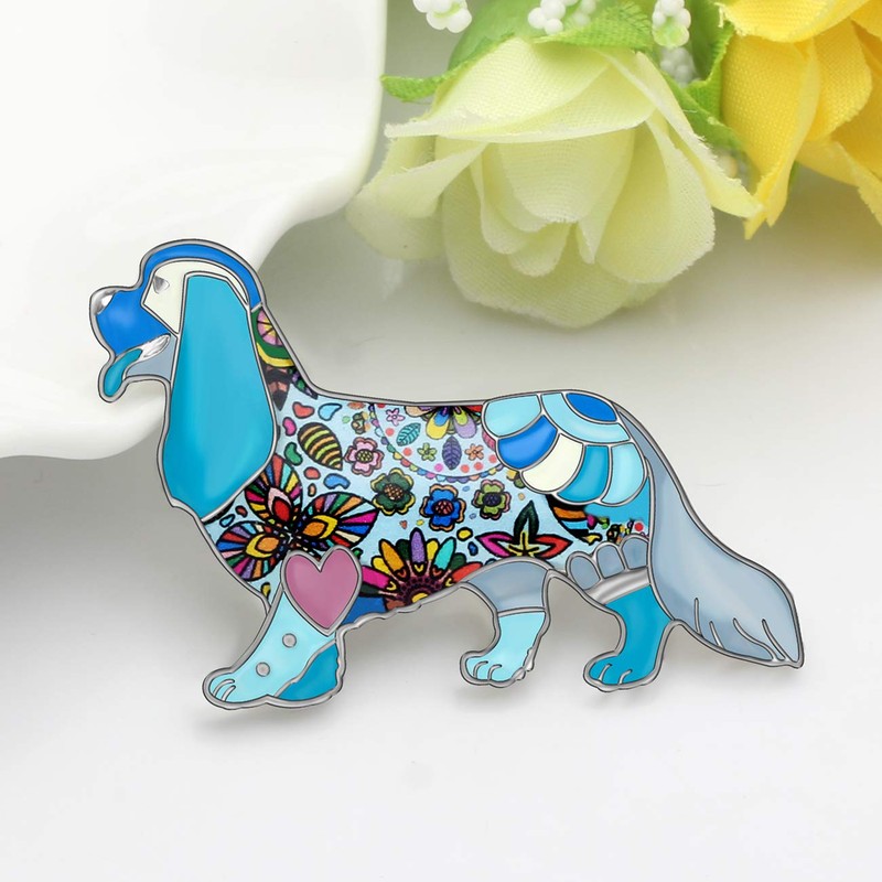 BONSNY Enamel Alloy King Charles Spaniel Dog Brooch Pins Jewellery for Women Girls Dress Scarf Accessories Gift (Blue)