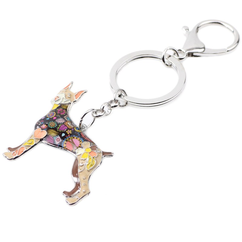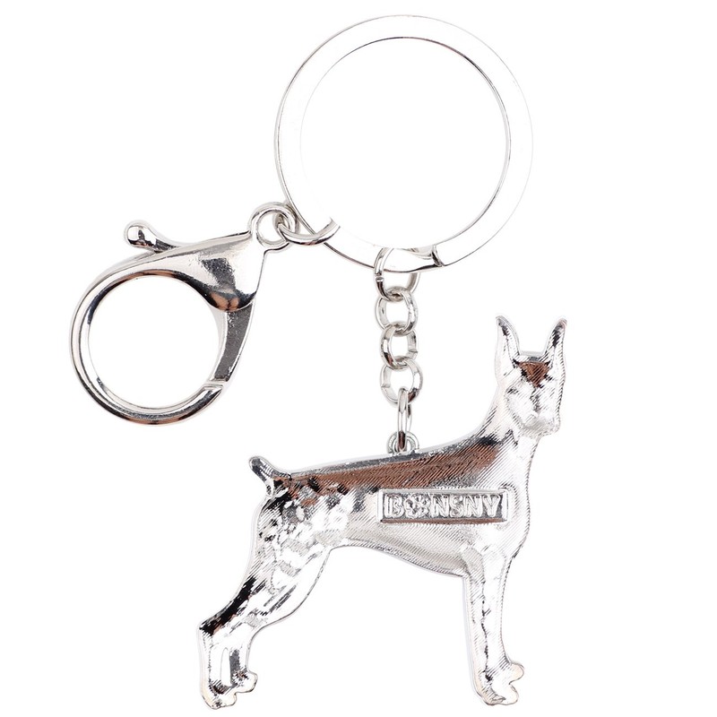 BONSNY Llavero de aleación esmaltada Doberman para mujer, regalo de coche, bolso de mano, joyería, Marrón, Mediano