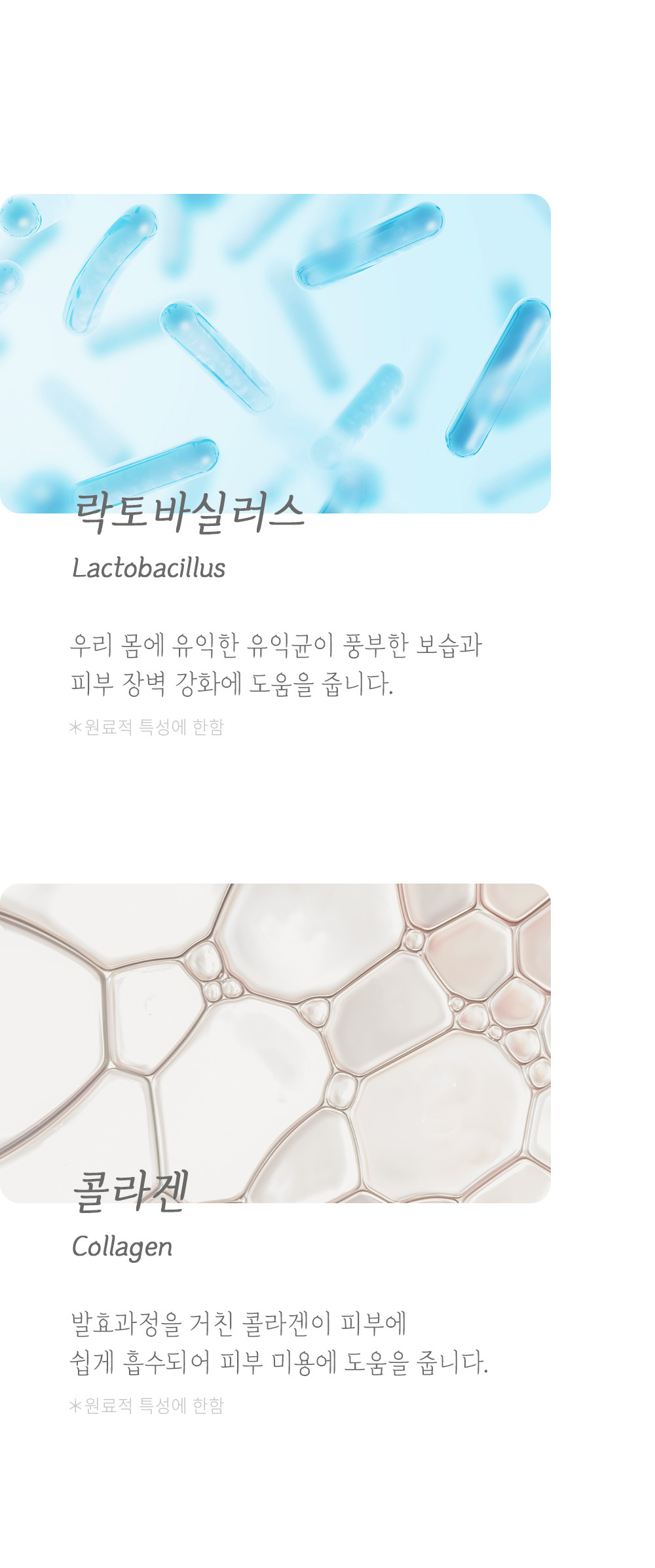 - ingredients required by Cosmetics Act: Hydrolyzed collagen (93%), Butylene glycol, 1,2-Hexanediol, Purified water, Ice plant extract, Biosaccharide gum-1, Sodium hyaluronate, Potassium hyaluronate, Hyaluronic acid, Sodium hyaluronate crosspolymer, Hydroxypropyltrimonium hyaluronate, Hydrolyzed hyaluronic acid, Sodium acetylated hyaluronate, Polyacrylate crosspolymer-6, Hydroxyacetophenone, C12-14 alkyl benzoate, Ethylhexylglycerin, Pentylene glycol, Fragrance, Disodium EDTA