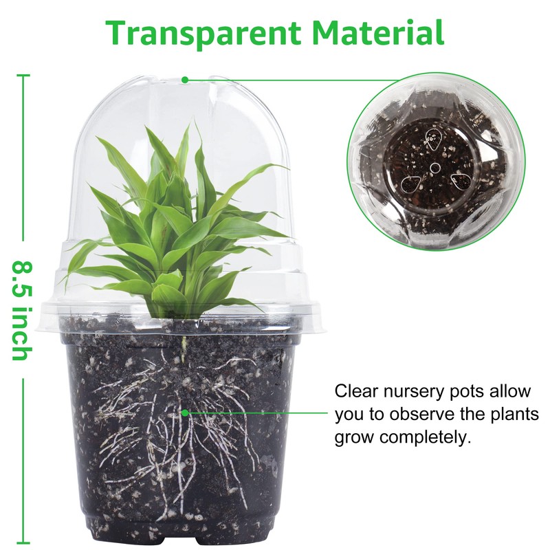 - Greenhouse with Humidity Dome: Bonviee clear plant nursery pot with humidity dome can provide a environment as a greenhouse to improve the germination rate of seed. The clear nursery lid can permit the light in and enhance the inner temperature and humidity to help plants photosynthesis.