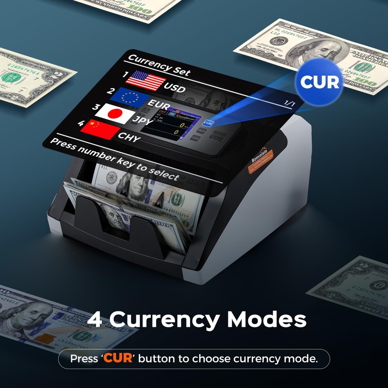 Bonvoisin Money Counter with UV/MG/IR Counterfeit Detection, Cash Counter Mac...