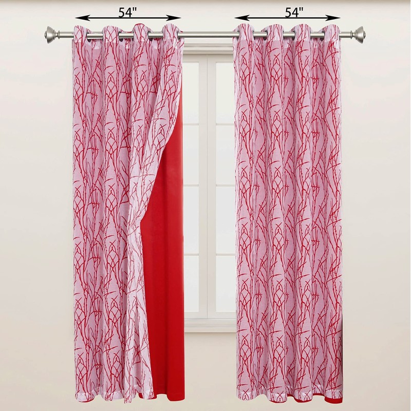 BONZER Mix and Match Curtains - 2 Pieces Branch Print Sheer Curtains and 2 Pieces Blackout Curtains for Bedroom Living Room Grommet Window Drapes, 54x95 Inch/Panel, Red, Set of 4 Panels