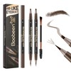 - 【2-in-1 Eyebrow Pen and Eyeliner】:Boobeen double-ended eyebrow pencil:One end features a precise square angled brush tip that effortlessly creates defined,3D eyebrows, while the other end is an eyeliner that perfectly contours the eye shape to draw smooth, flawless lines.