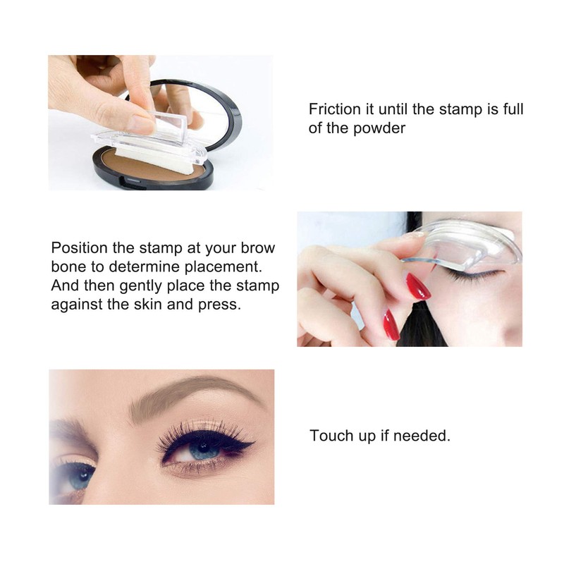 • Easy to use: first press the eyebrow stamp on the eyebrow powder and then rub it until the stamp is filled with the powder. Then position the stamp on your brow bone to determine the placement, and then gently place the stamp on the skin and press it.