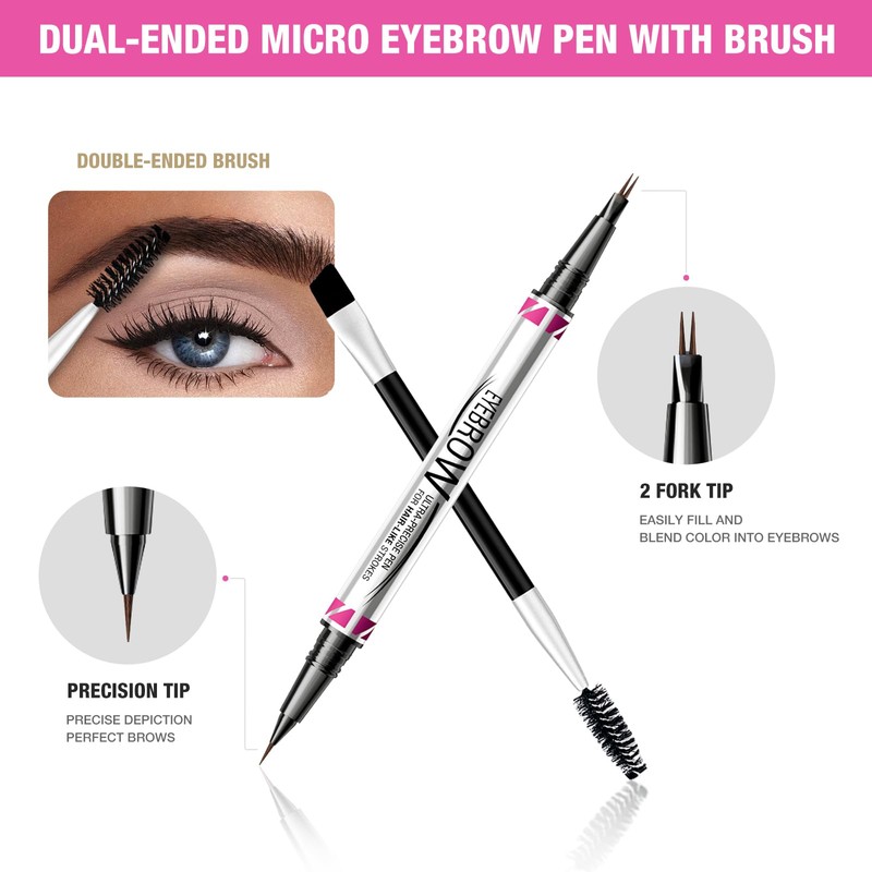 - 【Dual-ended Eyebrow Pencil】:Eyebrow pen for women features a precision brush tip for fine, hair-like strokes, 2 forked tips to fill in eyebrow gaps and blend color into brows.