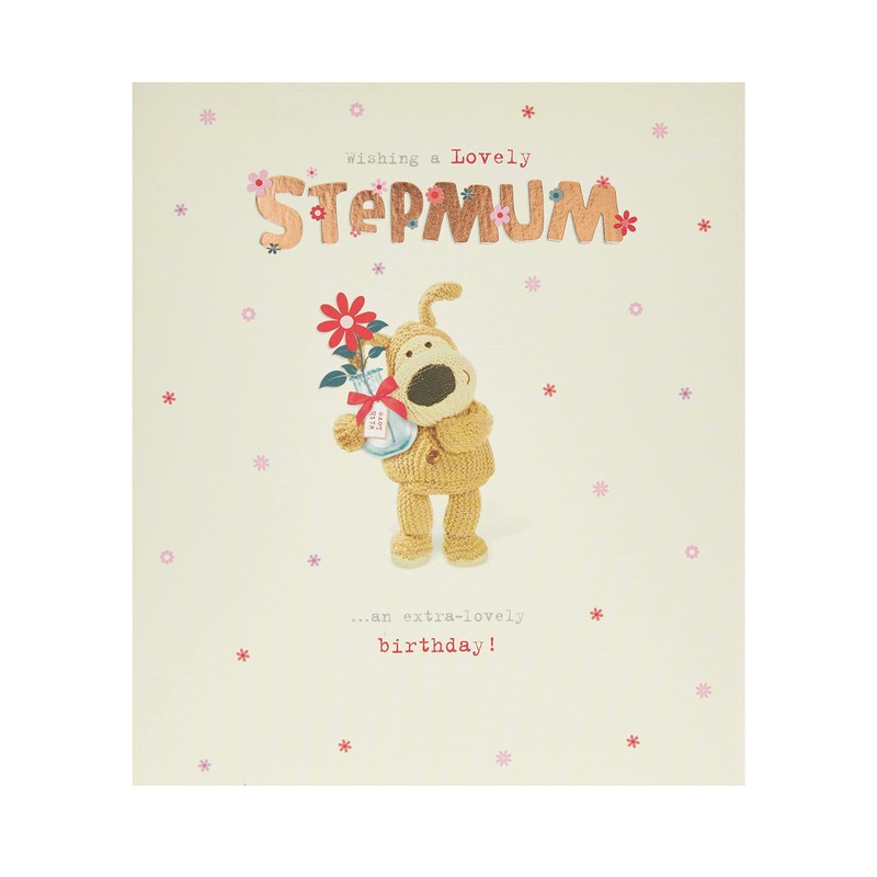 - Perfect for wishing a wonderful stepmum an extra-lovely birthday, this Boofle card is printed on premium quality board and decorated with copper foil finishes.