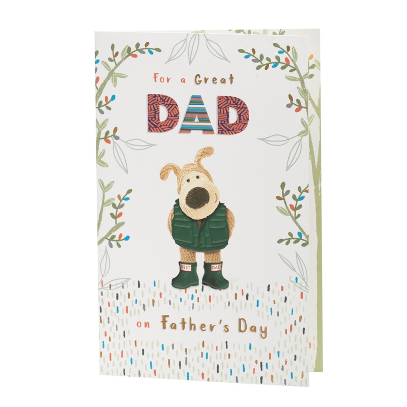 - DESIGN - Wish a happy Father’s Day to the best Dad with this cute card, featuring Boofle wearing wellies, finished with gold foil embossed elements for extra shine.