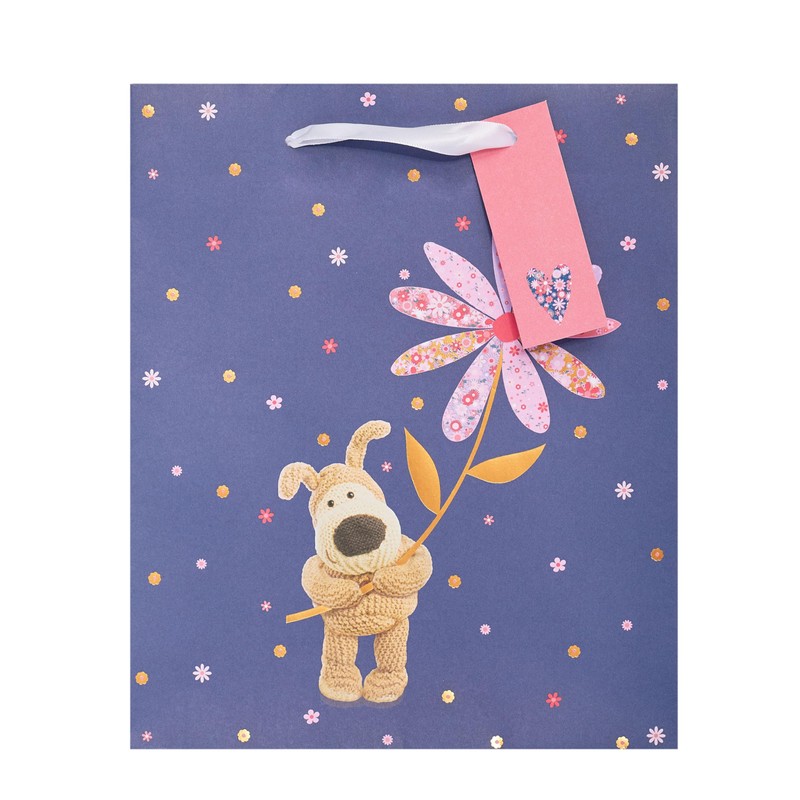 - Add the optimum finishing touch to your present with this cute Boofle gift bag, featuring everyone’s favourite pup presenting a patterned flower