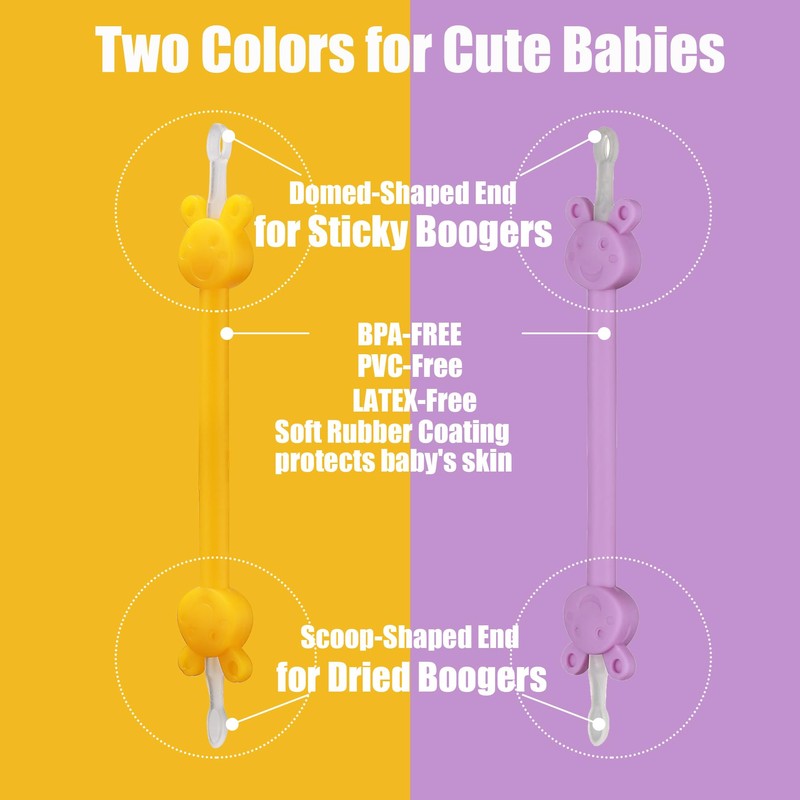 Booger Picker for Infants, Baby Nasal Booger and Earwax Remover for Newborns and Toddlers, Safe & Easy to Use, Infant Booger Picker for Sticky & Dried Boogers, Baby Boogie Picker (Orange & Purple)