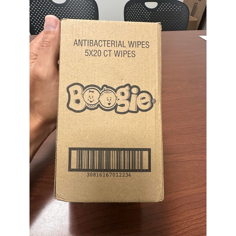 Boogie Antibacterial Hand Wipes by Boogie, Alcohol Free, Hypoallergenic and Moisturizing Aloe, for Kids and Adults -100 Total Wipes (5 Packs of 20)
