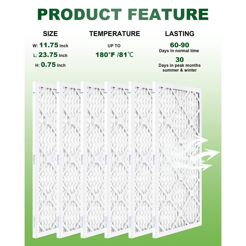 Improve your indoor air quality with the MERV 8/11/13 air filters by BOOGUAN! Say goodbye to dust, pet dander, pollen, debris, lint, smoke, smog and auto exhaust particulates. Say hello to better indoor air quality!