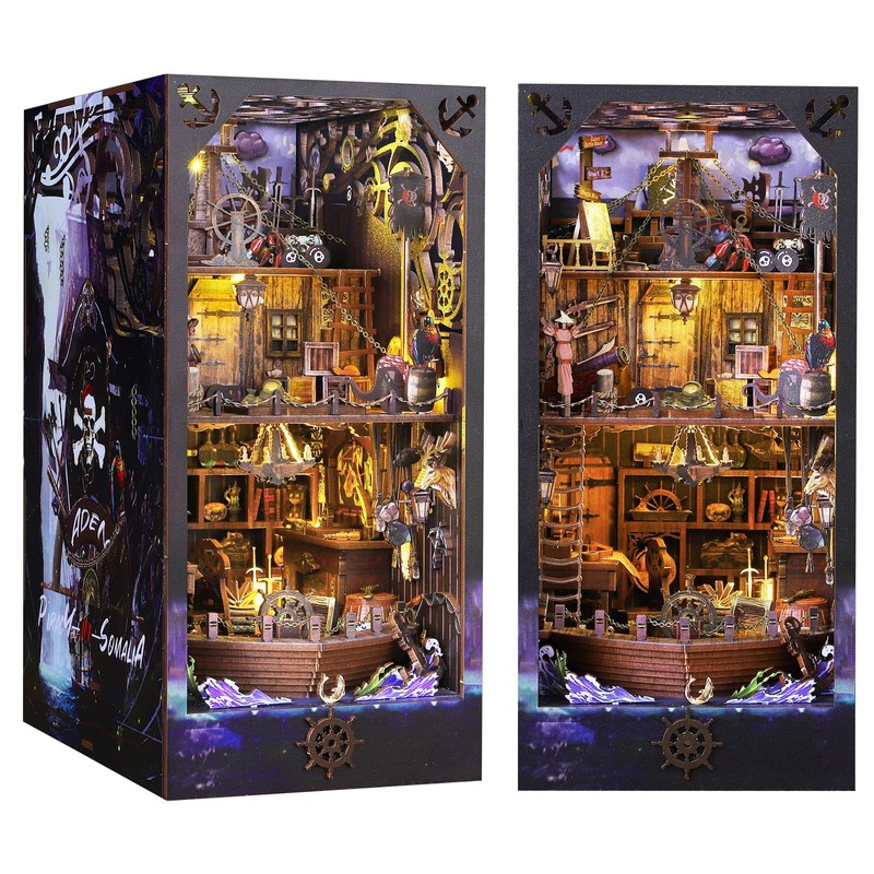 Book Nook DIY Kit, MOJINO Dollhouse Wooden Booknook Miniature House Kit with Furniture and LED Light, Magic World 3D Puzzle Bookends Made of Wood, Gift Decoration for Teenagers (Expedition Sailing)