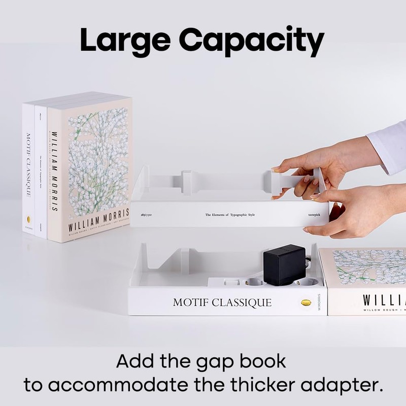 - Expandable with GapBook – Measuring 10.6 × 7.5 × 3.3 inches, this organizer provides ample space for power strips and cables. For even more storage, seamlessly expand it by adding GapBook, which integrates perfectly to increase capacity while maintaining a sleek, book-like design. Ideal for organizing cables and power boards in both home and office settings.