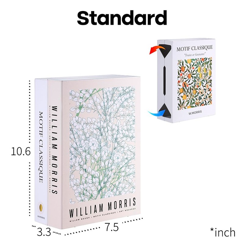 Book Shape Decorative Cable Management Box - Expandable Cable Organizer Box with Magnetic Closure for Home & Office (William Morris, Standard)