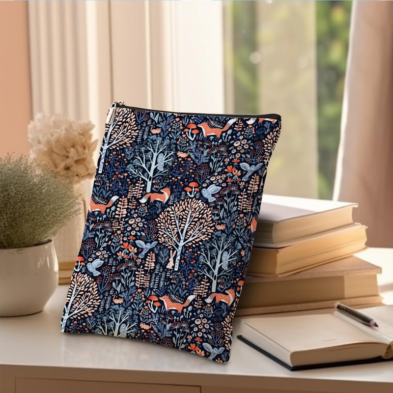 Book Sleeve Book Protector Book Pouch Book Lovers Gifts Bookish Gifts Book Cover with Zipper for Hardcover Paperback Washable Forest Fox Printed Gift Bag for Teacher Student Birthday, BookCover