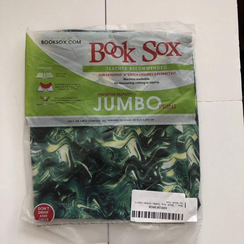 This jumbo book cover from Book Sox is perfect for any reader looking to add a pop of color to their library. The green swirl design is eye-catching and unique, making it a great addition to any bookshelf. Made with stretch fabric, this cover is designed to fit snugly over your favorite read.
