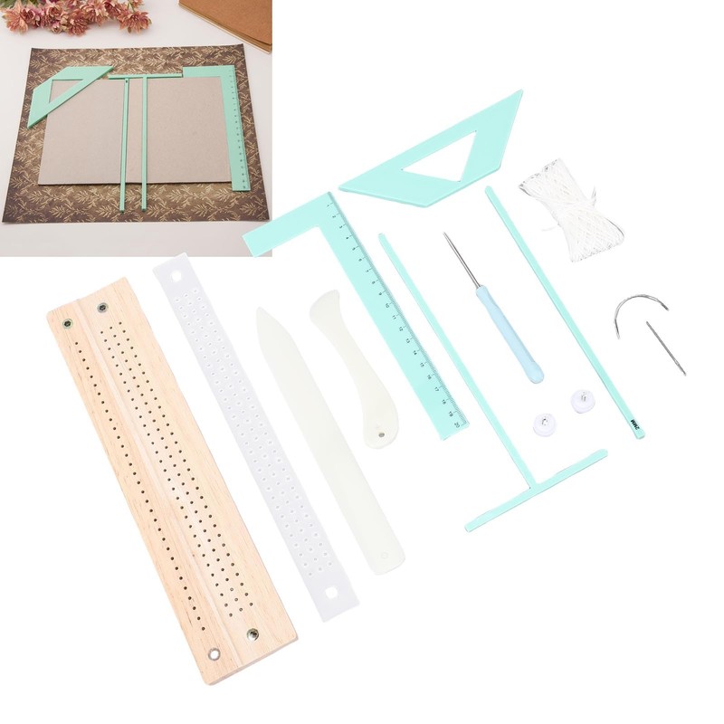 Bookbinding Kit, Multifunctional Portable Bookbinding Spacer Tools Set Binding Punch Guide Set Bookbinding Scrapbooking Tool Set for Diary Mini Album