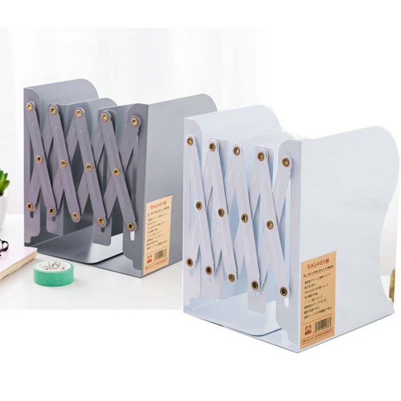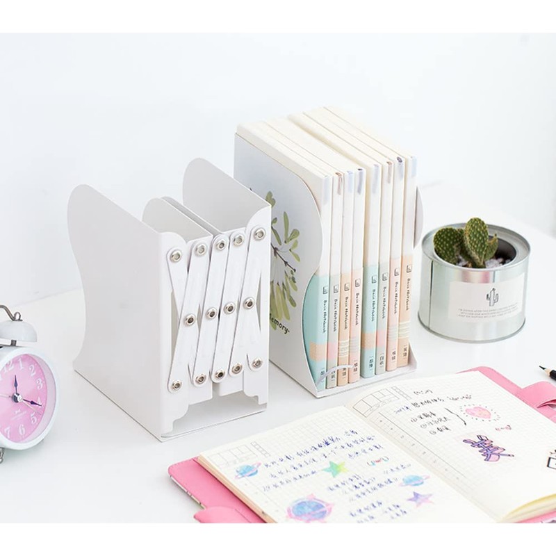 Bookstand Telescopic Bookshelf Folding Bookshelf Desktop Storage Metal Fashion Bookshelf (White)