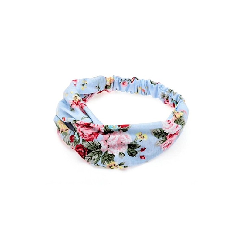 Boolavard Women's Boho Floral Style Criss Cross Head Wrap Hair Band (Blue)