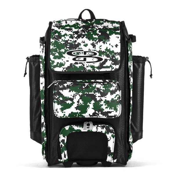 Boombah Catchers Superpack Hybrid Digital Camo Bat Bag Black/Dark Green - Wheeled & Backpack Version