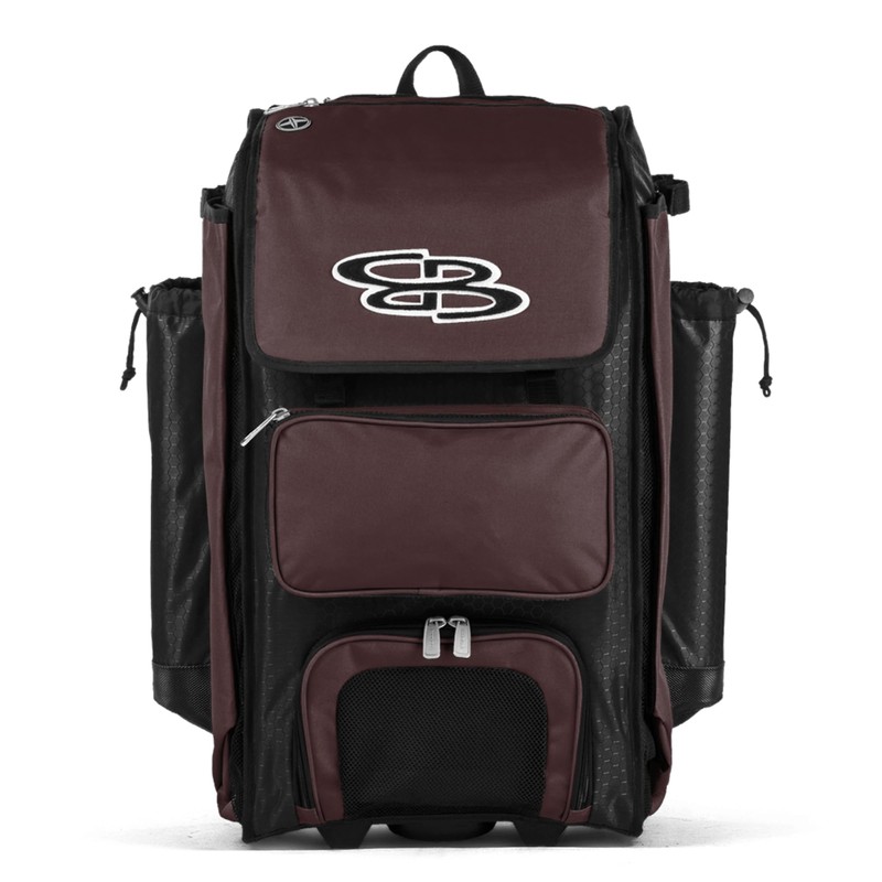 Boombah Catchers Superpack Hybrid Rolling Bat Bag - Black/Maroon - Wheeled & Backpack Version