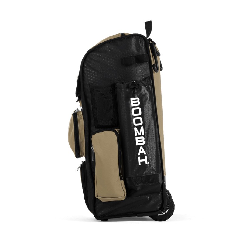 - ''' Big rolling bag is perfect for baseball, fastpitch and slowpitch gear. This is the rolling version (not a backpack)#||# Heavy duty wheels and a telescopic handle for easy transportation.#||# Separate shoe compartment - 2 side, bat compartments - Holds up to 4 bats#||# Reinforced J-hooks make this bag easy to hang on the fence. - Dimensions: 23.5x13.5x 9.5#||# From Boombah - the leader in performance engineered sports apparel and equipment.'''