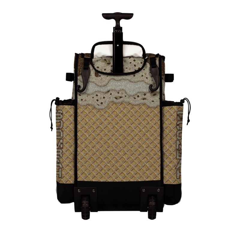 Boombah Rolling Superpack Baseball/Softball Gear Bag - Telescopic Handle - Holds 4 Bats - Wheeled Version - Ice Cream Cookie Dough Glitter Gold/Brown/Flesh