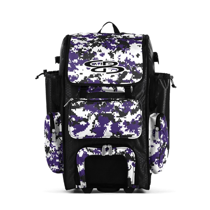 Boombah Rolling Superpack Hybrid Digital Camo Bat Pack Black/Purple - Wheeled & Backpack Version