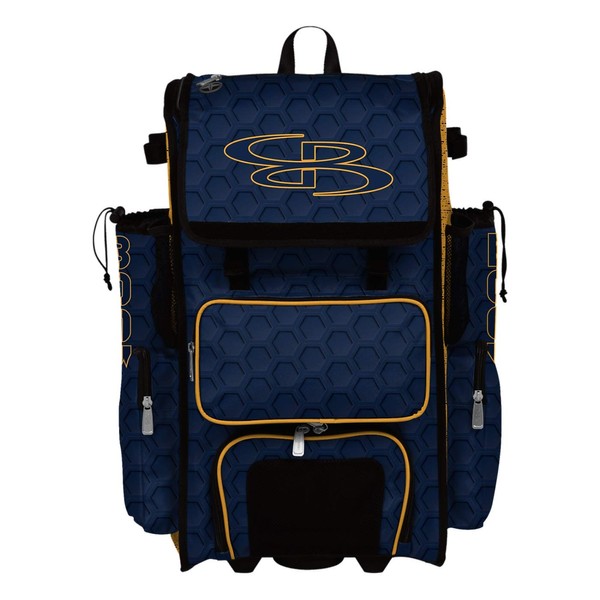 Boombah Superpack Hybrid Rolling Bat Bag - 3DHC Navy/Gold - Wheeled & Backpack Version