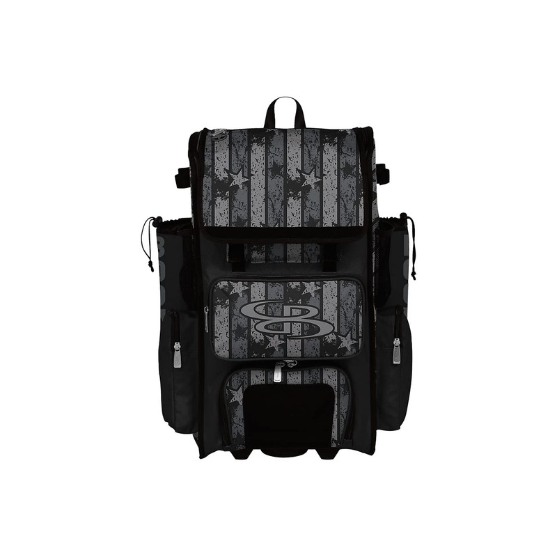 Boombah Superpack Hybrid Rolling Bat Bag - USA Freedom Black Ops Bat Pack Black/Charcoal - Wheeled & Backpack Version