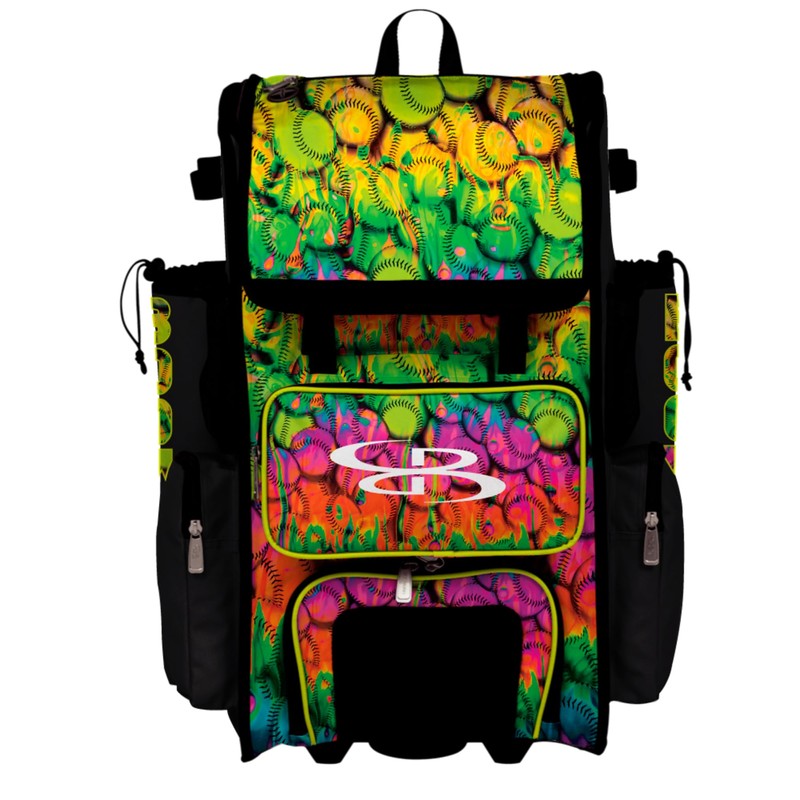 Boombah Superpack Hybrid Rolling Bat Bag - Wheeled & Backpack Version - Softball Neon Ballpark Multi