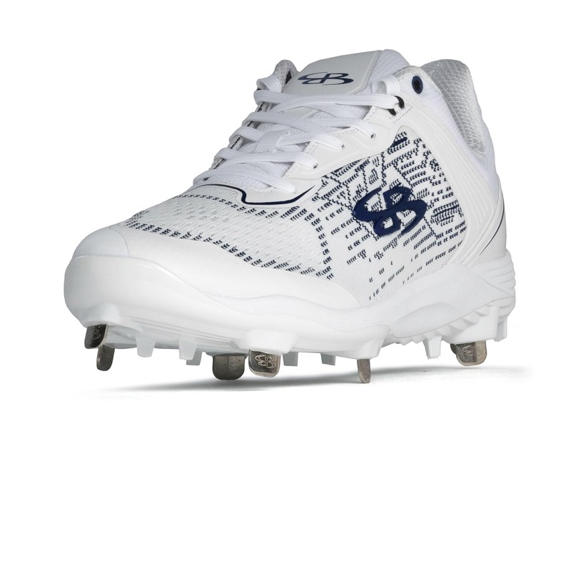 Boombah Viper Pureknit Men's Metal Cleat - White Out - White/Navy - Size 11