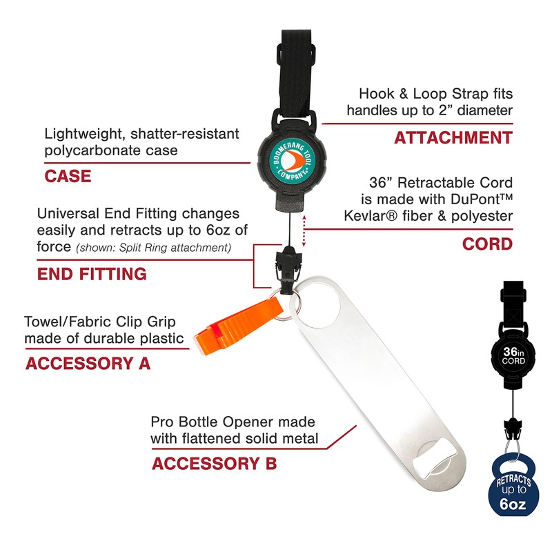 Boomerang Cooler Mate Industrial Grade Outdoor Gear Tether with a Professional Bottle Opener and Towel Clip