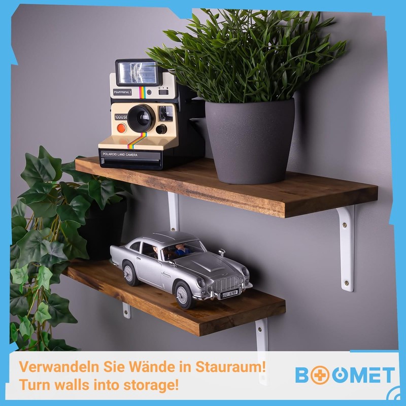 - With our shelf brackets, you can easily and quickly attach wall shelves and display books, vases, dishes, spices, decorative figures or other accessories.