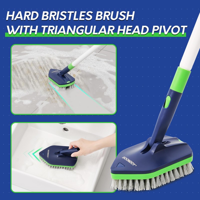 - HARD BRISTLES BRUSH WITH TRIANGULAR HEAD PIVOT: Features a triangular head pivot, allowing you to effortlessly reach tight spaces and angles. This handled scrub brush is an essential part of your shower cleaning tools, perfect for detailed cleaning tasks