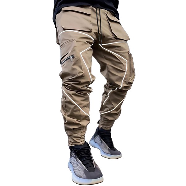 BOOMLEMON Men's Cargo Jogger Pants Reflective Technical Hip Hop Harem Pants Punk Streetwear Tactical Track Pants(Khaki S)