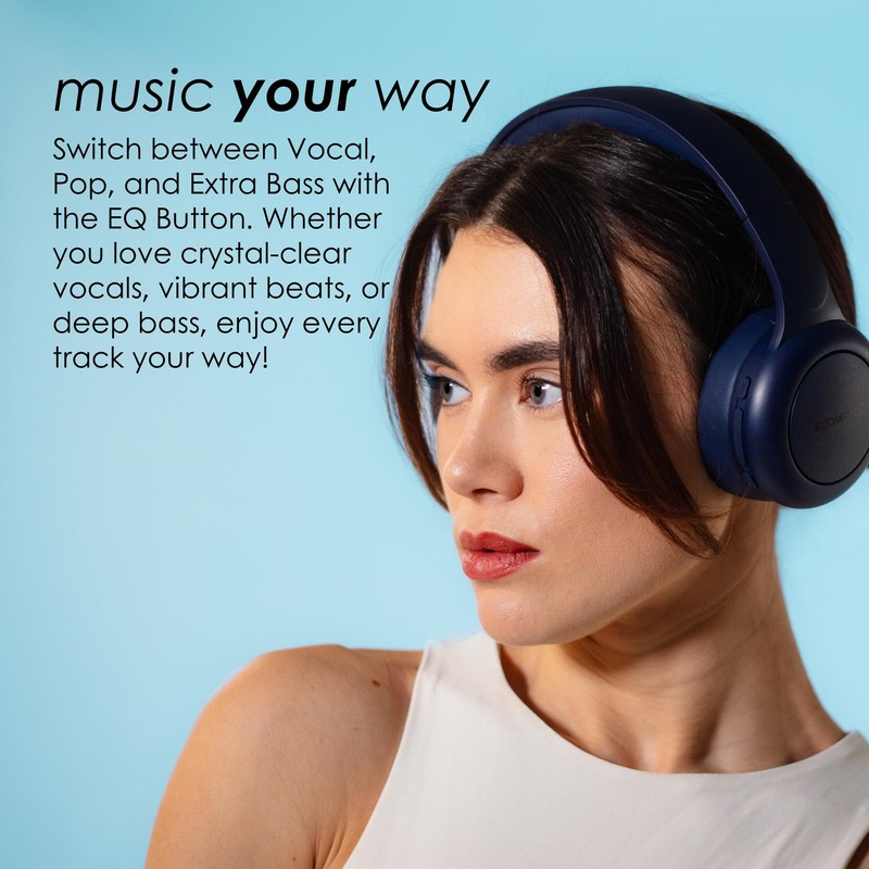 Boompods Headpods Tune Wireless Headphones - Over-Ear Bluetooth Headphones, 65+ Hour Playtime, On Ear Headset with PillowFoam Comfort & Built-in Mic, Lightweight Foldable Design and 3 EQ Modes, Blue