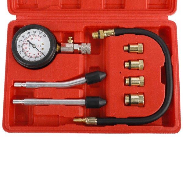 - The compression tester kit contains everything you need to check valves, piston rings, cylinder bores or head gaskets and get accurate readings.