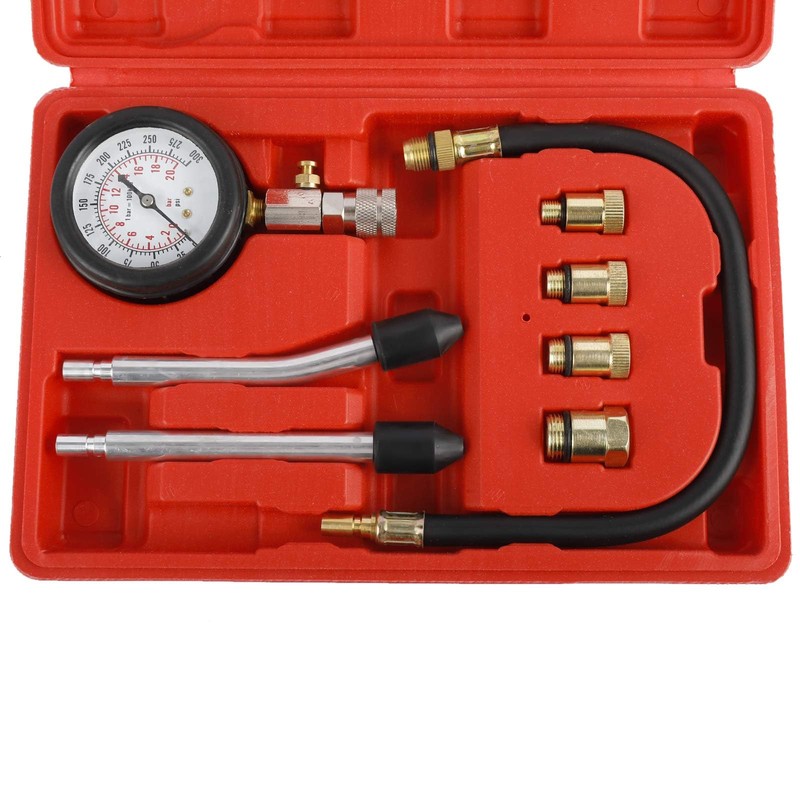 - With this excellent pressure test kit, checking the piston pressure is easy. The piston pressure in petrol engines can be easily and quickly measured via the spark plug thread. The pressure in the petrol or diesel engine can be easily read on the practical pressure gauge.