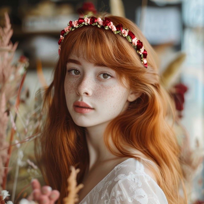 BOOMTOP Flower Headband Dirndl Hair Band Red Roses Costume Hair Accessories Flowers Hair Wreath Flower Wreath Hair Flower Headband Women Girls Headpiece for Wedding Carnival Theme Party