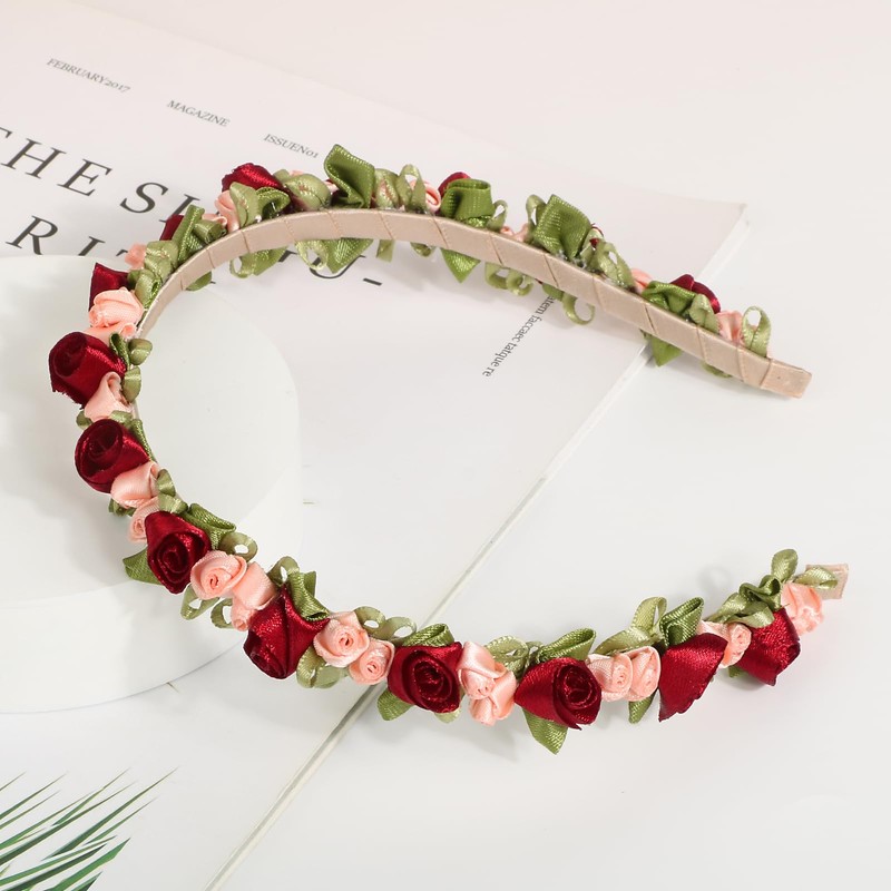 - With many flowers: our headband enchants with small rose petals made of textile material and decorated with pink flowers and green leaves, which can create a romantic festive atmosphere
