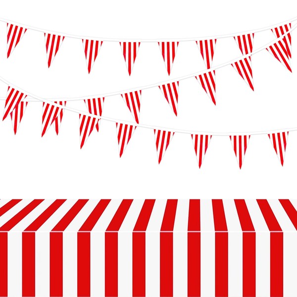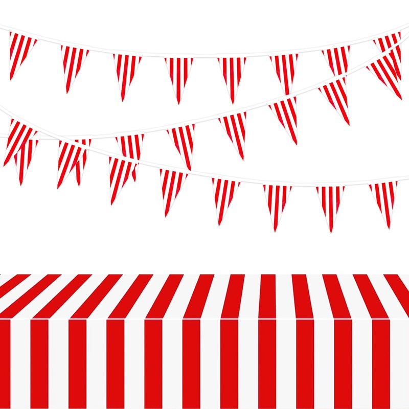 BOOMTOP Tablecloth Carnival Red White Stripes Banner Plastic Tablecloths Garland Carnival Fancy Dress Party Decoration
