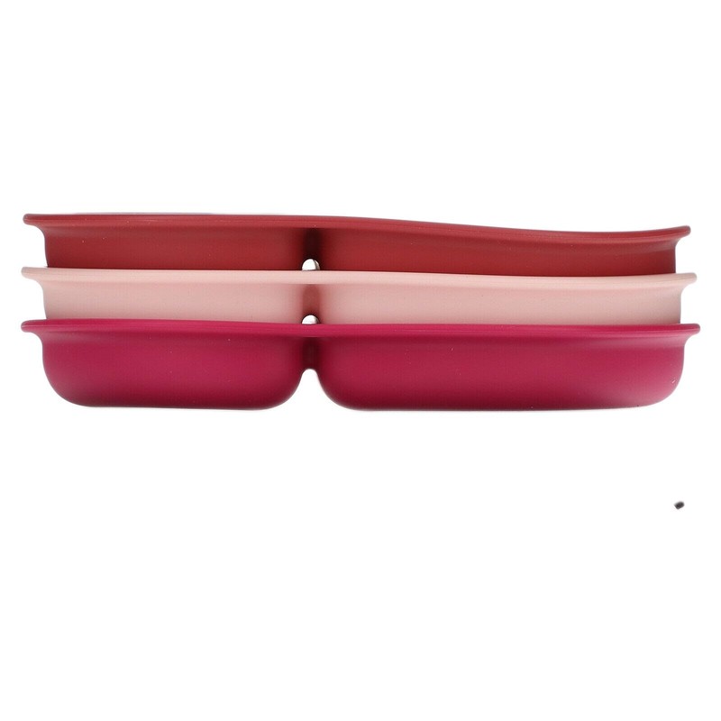 Boon Chow Silicone Plate Set - 3 Unbreakable Divided Toddler Plates - Baby Plates for 6 Months and Up - Baby Led Weaning Supplies - Pink Multicolor