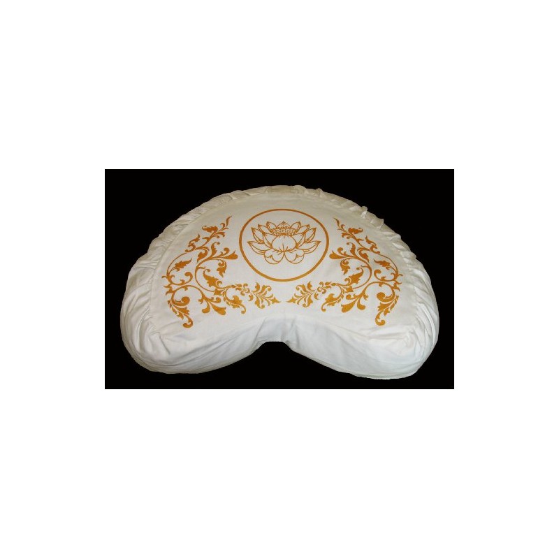 Boon Decor Meditation Cushion Crescent Zafu Purity Collection Lotus Ivory/Gold