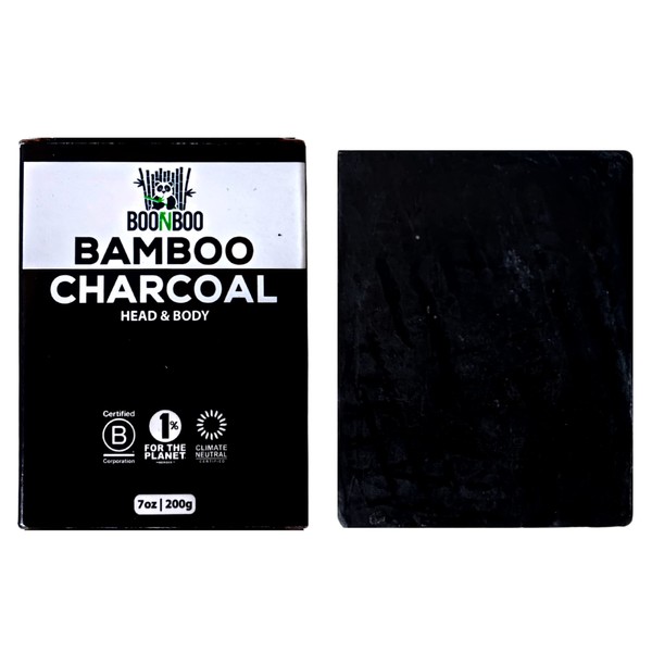BOONBOO Bamboo Charcoal Body Soap | 7oz / 200g | Cleansing Bar with Aloe Vera Extract